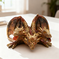 รูปปั้นมังกรทำด้วยมือ3หัวแฟนตาซีตกแต่งบ้านรูปปั้นมังกรกอธิคพร้อมทองสำหรับเป็นของขวัญคริสต์มาส