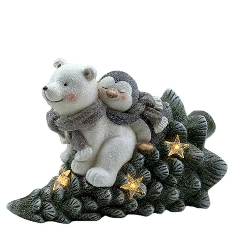 รูปปั้นในสวน,ของตกแต่งรูปหมีขั้วโลกรูปหมีนุ่มนิ่มสำหรับเทศกาลคริสต์มาสพร้อมไฟพลังงานแสงอาทิตย์